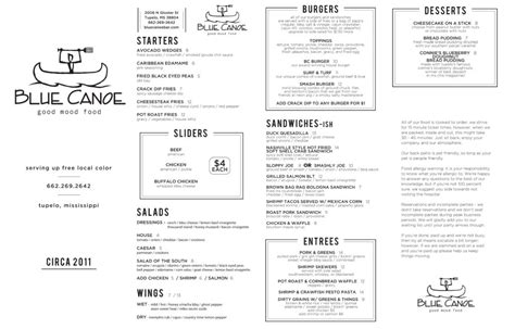 The Blue Canoe Tupelo Menu is a culinary delight that offers a wide variety of dishes to satisfy any palate. Whether you're in the mood for seafood, steak, or pasta, this menu has something for everyone. With its unique blend of flavors and fresh ingredients, it's no wonder that the Blue Canoe Tupelo Menu is a favorite among locals and tourists alike. If you're looking for a delicious meal that will leave you wanting more, look no further than the Blue Canoe Tupelo Menu. This menu offers a wide range of options that are sure to satisfy even the pickiest of eaters. From their famous seafood platter to their mouthwatering steak and pasta dishes, there is something for everyone on this menu. One of the main targets of the Blue Canoe Tupelo Menu is to provide a dining experience that is both enjoyable and memorable. With its cozy atmosphere and friendly staff, this restaurant strives to create a welcoming environment for all guests. Whether you're dining alone or with a group, you're sure to feel right at home at the Blue Canoe Tupelo. In conclusion, the Blue Canoe Tupelo Menu offers a wide variety of delicious dishes that are sure to satisfy any craving. From fresh seafood to juicy steaks, this menu has it all. Whether you're in the mood for a casual lunch or a fancy dinner, the Blue Canoe Tupelo Menu is the perfect place to indulge in some tasty cuisine.